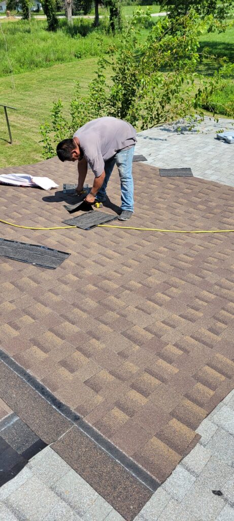 A construction process focused on installing, repairing, and maintaining the protective covering on the top of homes